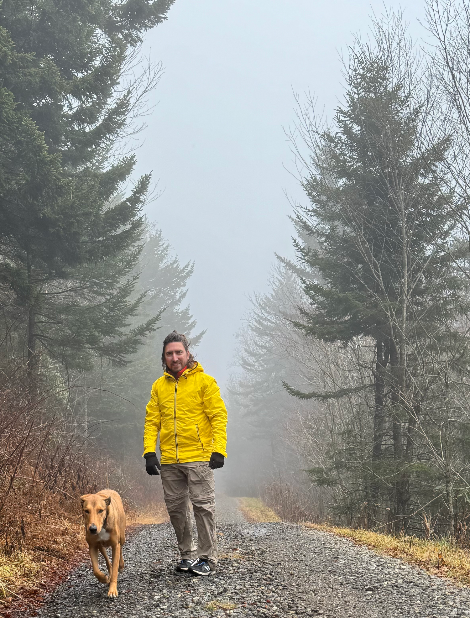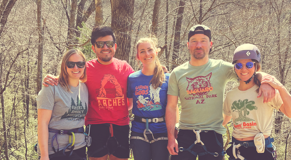 I'm Jon Terzini, the guy behind all these cool designs. That's Bowie Boi next to me. We've both got a bit of a travel bug, and lucky for us quite the playground to explore. Right in my backyard of the Midwest, there are dozens of state parks and charming towns waiting to be explored. Instead of just scribbling notes in a notebook about their beauty, I draw them – whatever comes to mind that captures the essence of these places. With a background in graphic design and screen printing, turning my art into apparel is a breeze.