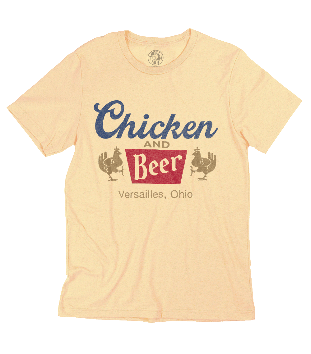 Ever been to Poultry Days in Versailles? Of course you have, that's why you are here, and probably how you found this shirt. Ok so maybe this is a play off of the Coors Banquet logo but really it stands on it's own two legs - chicken legs. But seriously, the chicken dinner is fire and the festival itself is a blast. On a personal note I have a family connection to Darke County so this one is special to me. Grab this shirt before it wanders off.