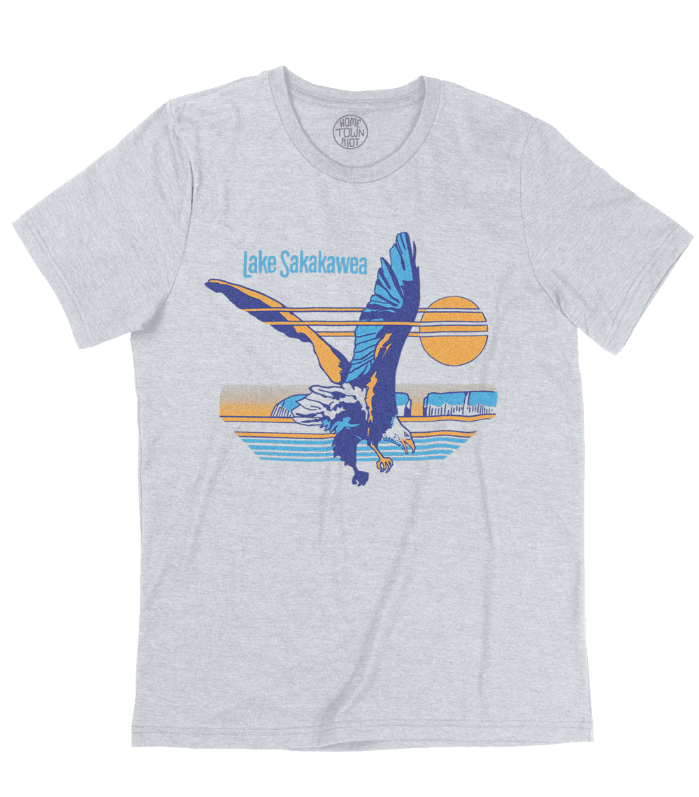 Here's a retro Lake Sakakawea shirt that should blow your socks off, assuming you were wearing some to begin with. We put a Bald Eagle on this one because why not? You can spot them out there on the lake, or perhaps at Lake Sakakawea State Park. Either place is as good as any to show off your love for one of North Dakota's premiere destinations. Grab one today.